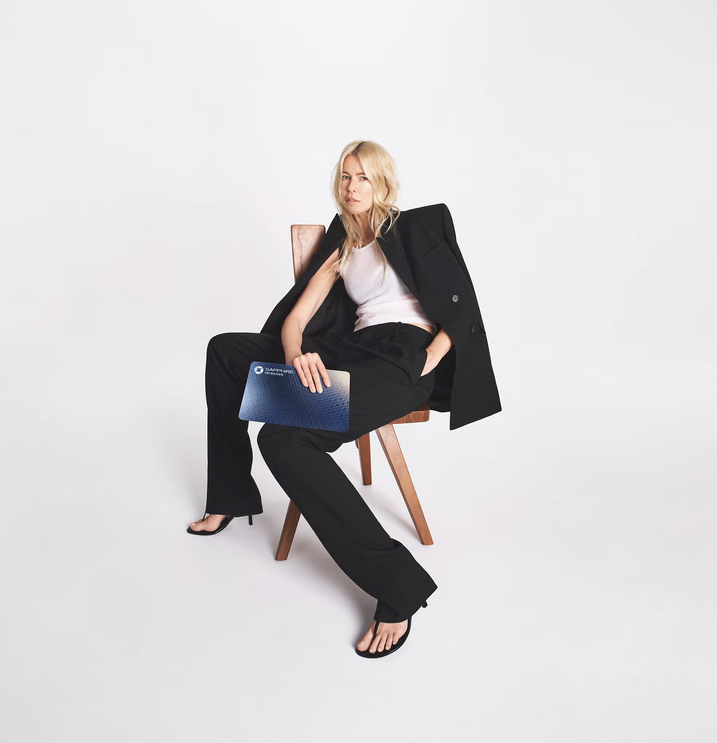 A model holds the Sapphire card the way you’d hold a handbag.